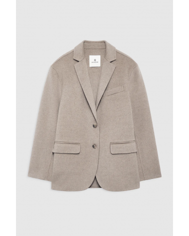 Blazer déstructuré en laine et cachemire double face épais, coupe oversize classique, col cranté et fermeture à deux boutons.