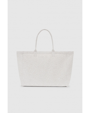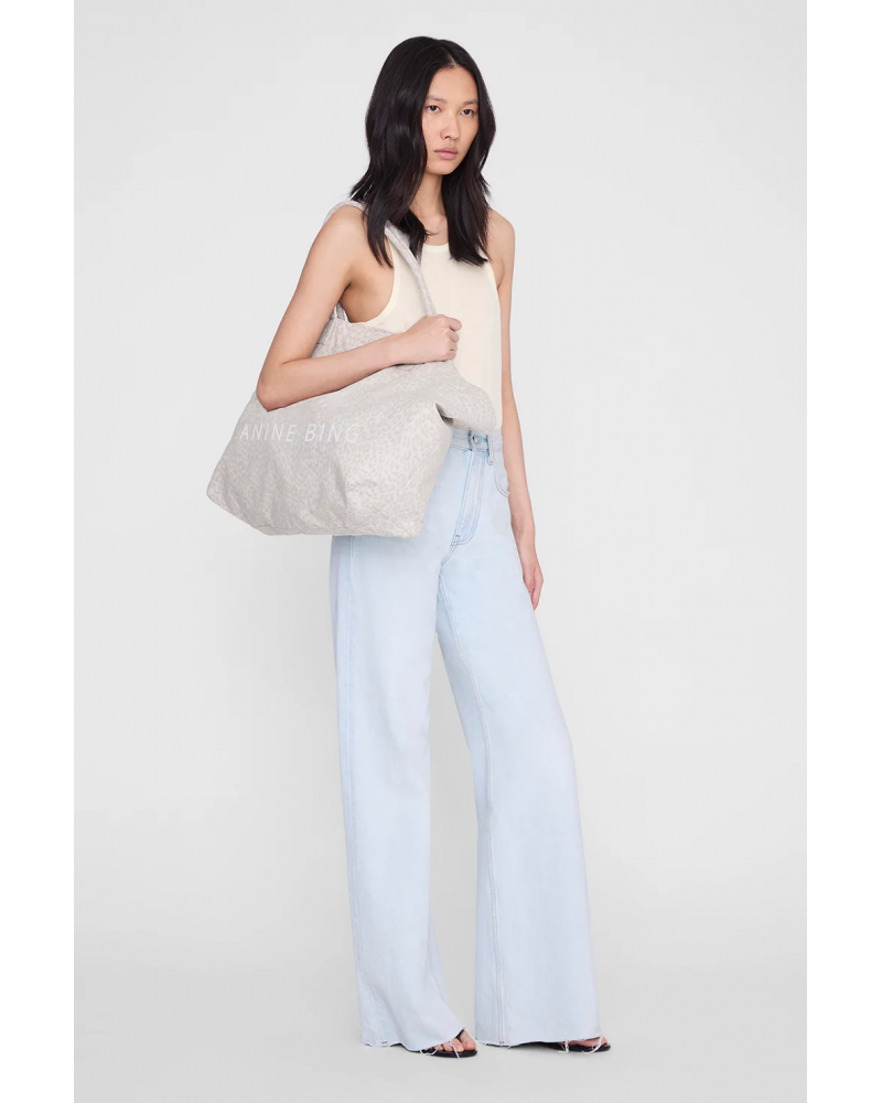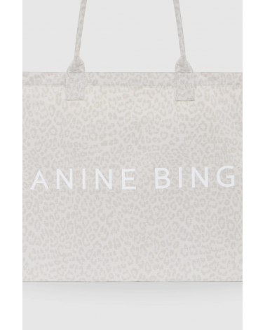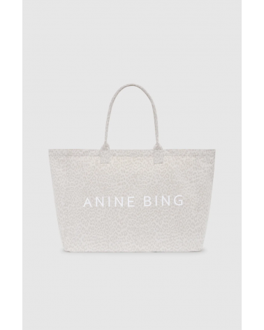 Un sac cabas en toile non doublée, orné d'un imprimé léopard blanc délavé et du logo ANINE BING sérigraphié.