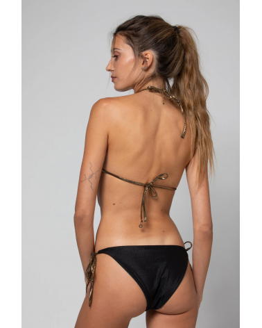 Découvrez le top Kate, un triangle élégant qui sublime le décolleté avec finesse et légèreté. Sa coupe intemporelle épouse naturellement la silhouette, tandis que ses bretelles dorées apportent une touche raffinée et lumineuse qui capte subtilement la lumière.