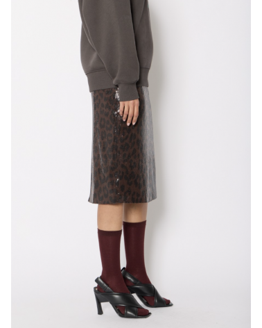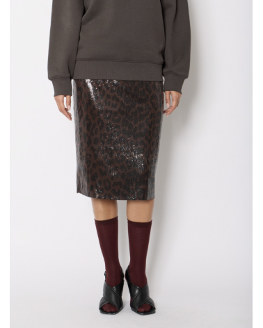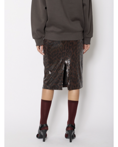 Faites sensation avec la jupe midi imprimée léopard JAMYLA rehaussée de sequins scintillants. Sa coupe fluide et féminine apporte un mouvement élégant, tandis que l’imprimé léopard, associé à l’éclat des sequins crée un look audacieux et glamour. Parfaite pour illuminer vos tenues de soirée.
