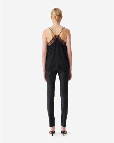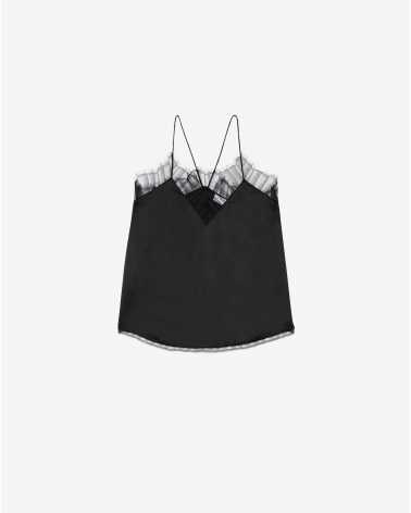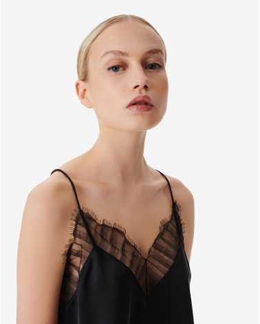 Caraco en soie et dentelle BERWYN. Fines bretelles et détails de dentelle sur le décolleté.