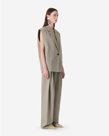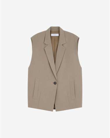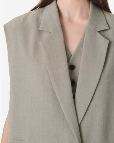 Veste de tailleur sans manches SOLEDAD. Coupe oversize avec col tailleur large. Modèle structuré fermé par un bouton sur le devant.