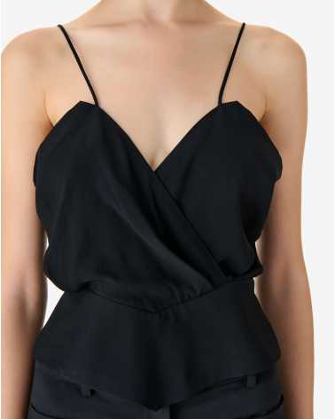 Top à fines bretelles OLYA. Encolure croisée en V et taille marquée.